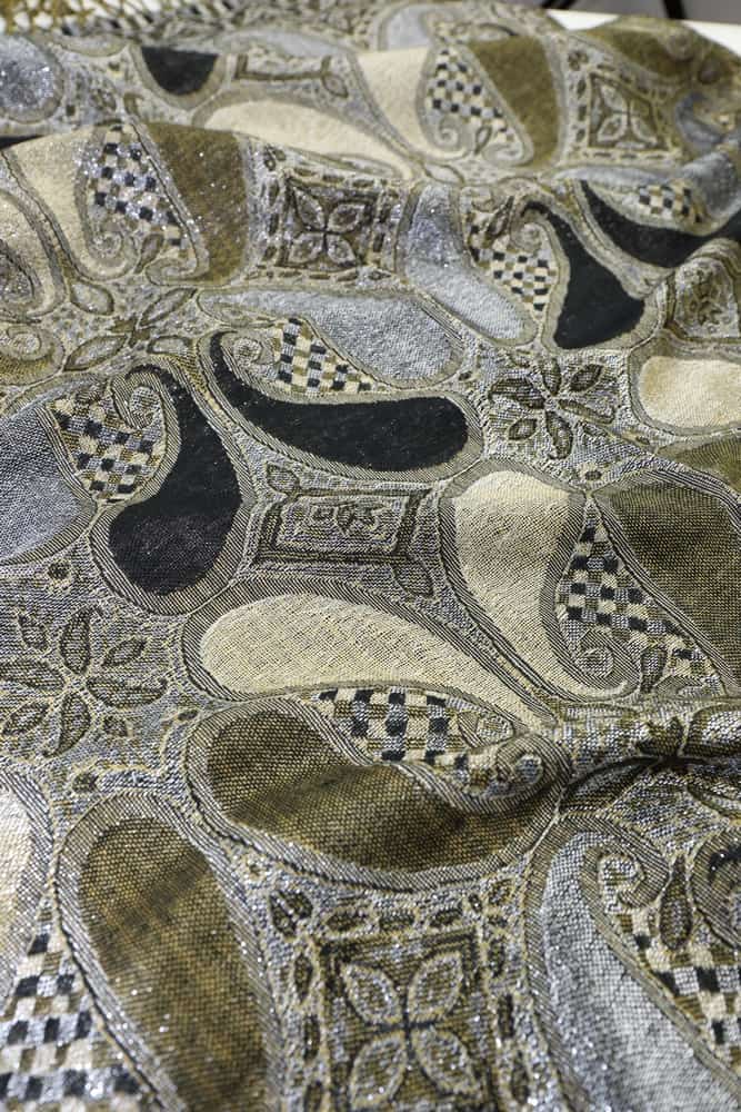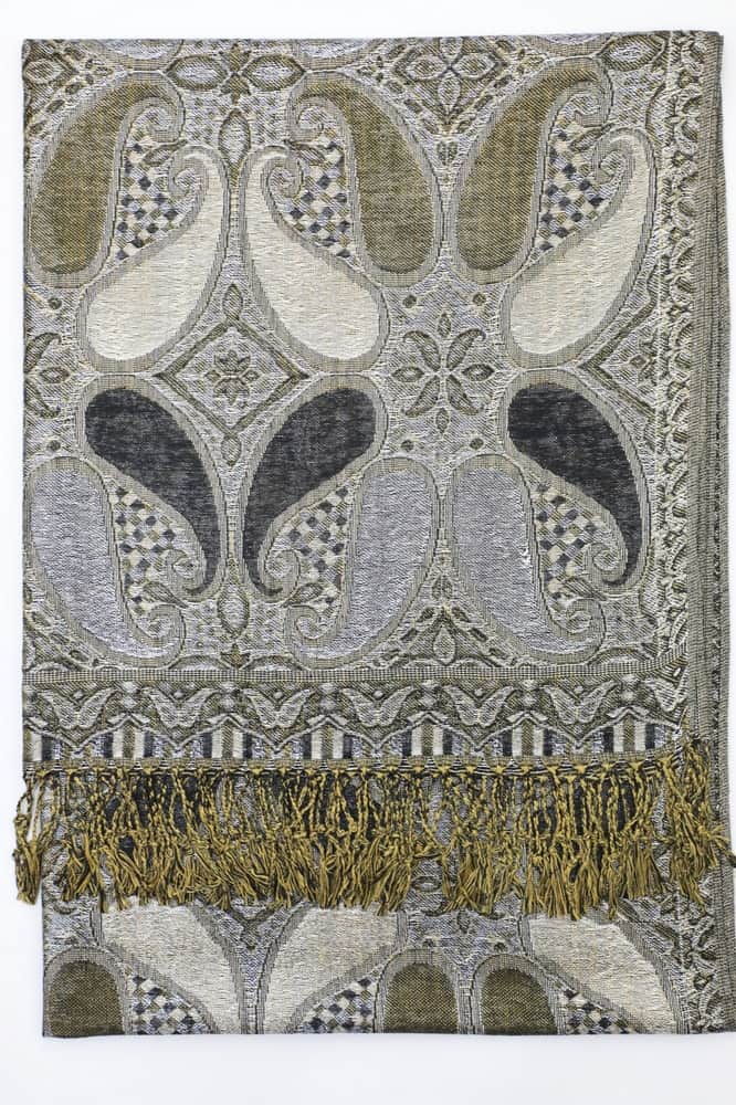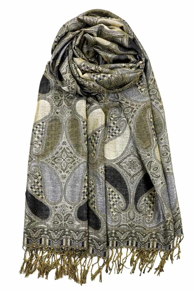 This sparkling black metallic pashmina shawl feature metallic thread weave and colorful all paisley pattern. It is soft and luxurious, and the metallic accents give it a rich but not gaudy feel. The slight metallic made it more dressy than a plain shawl.
