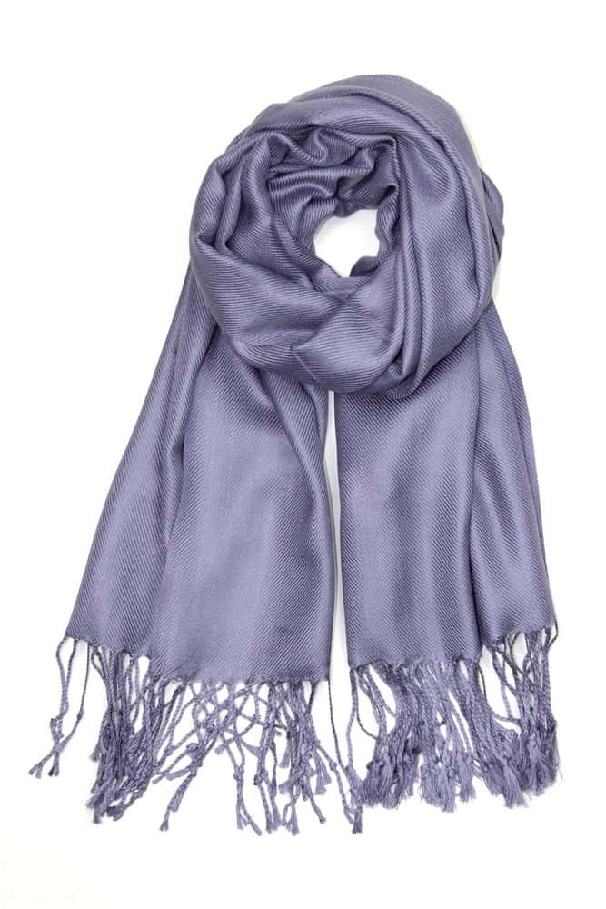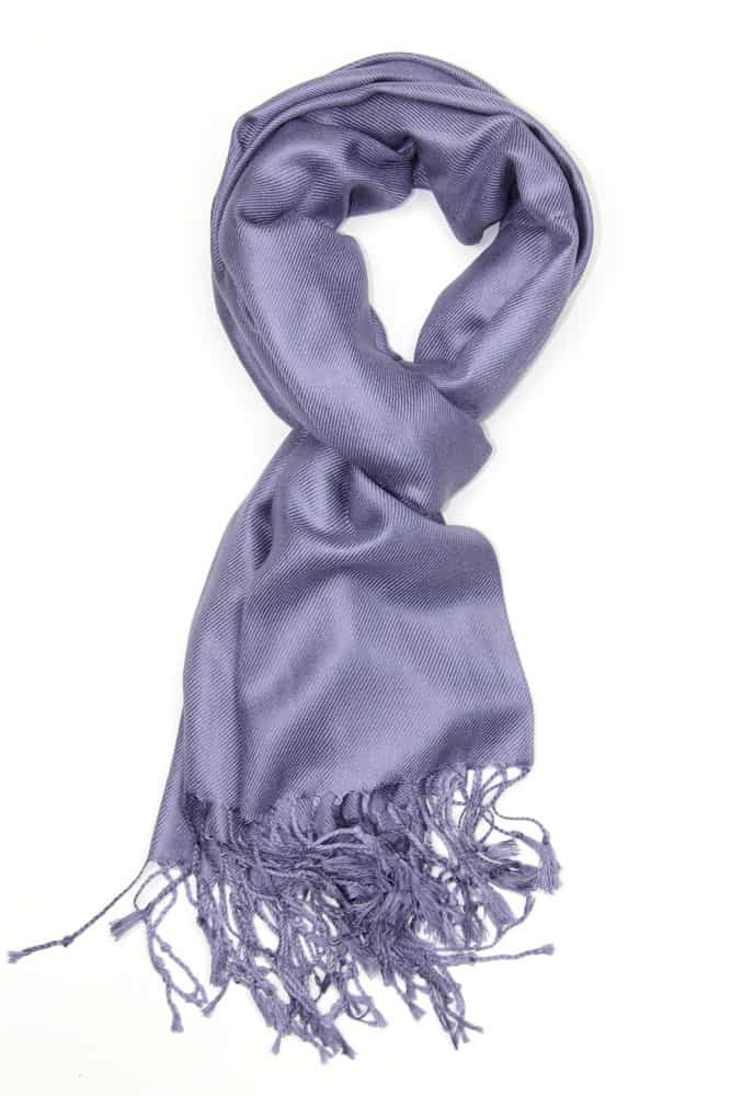 It’s extremely soft, elegant, and has a subtle sheen. Substantial fabric that is smooth and tightly woven, this bluish purple pashmina shawl is a nice accessory in the Spring, Summer, Fall, even Winter. Drapes nicely and feels luxurious around the neck.