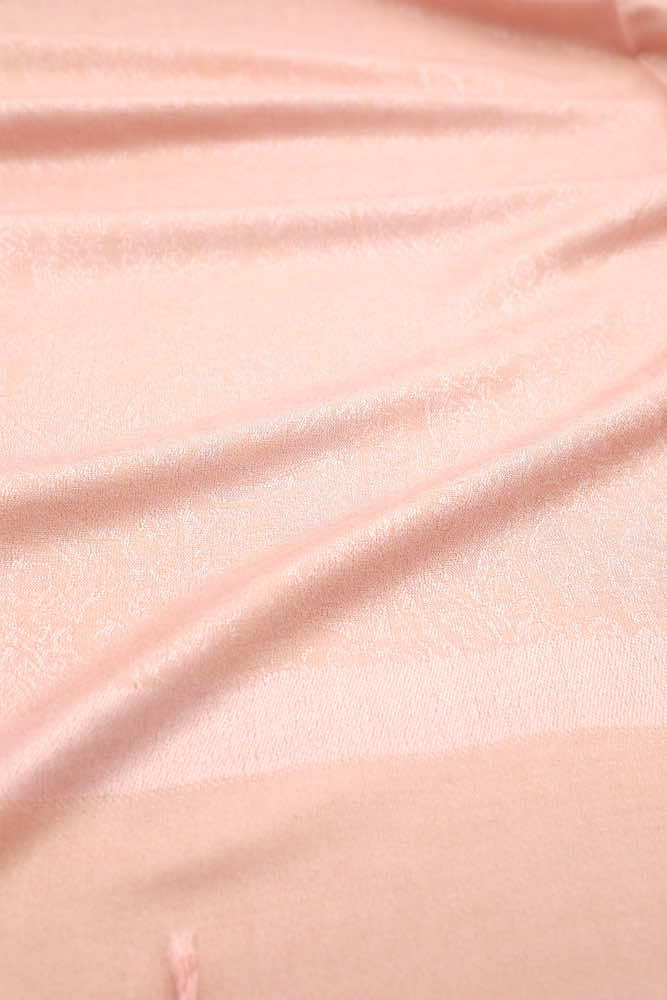This blush jacquard paisley pashmina features exquisite brocade texture, sophisticated paisley pattern. Vintage paisley pattern is double sided. Each side is made of both colors, but one will be stronger on one side and another on an opposite. Impressive ornate brocade texture. Finely woven to perfection.
