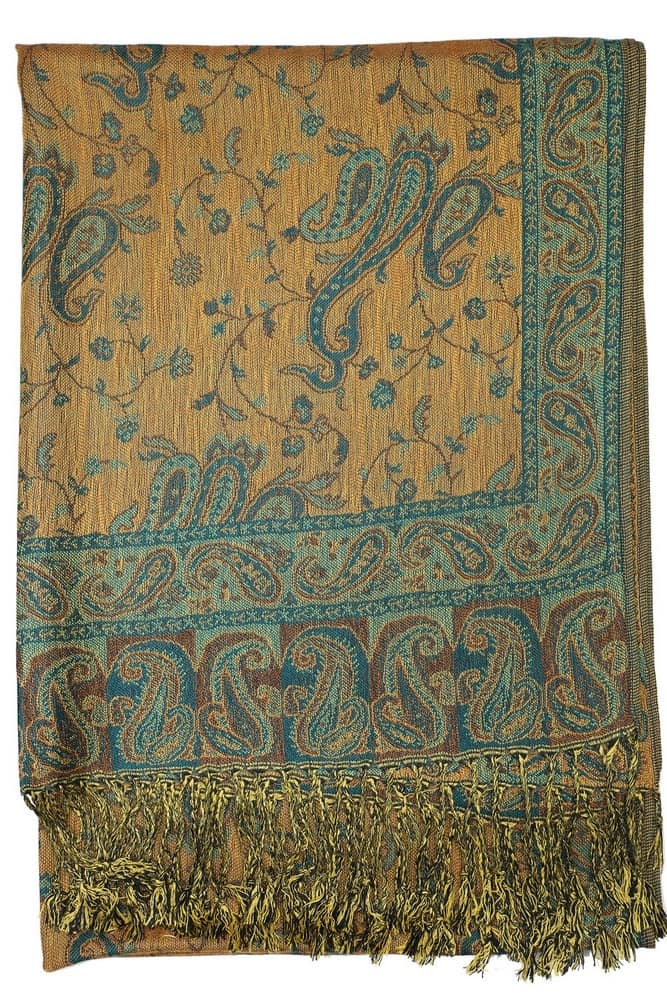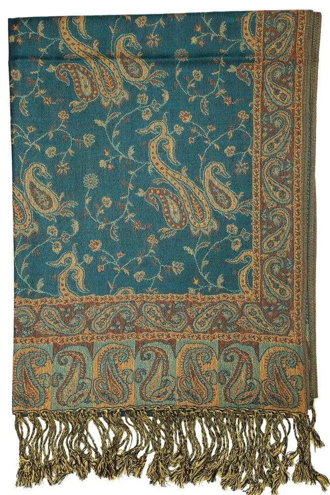 Design is fully reversible. This dark seagreen reversible paisley pashmina scarf is beautiful and charming for evening wear and great for this time of year. One shawl does it all! These evening pashmina shawls are shiny dressy and elegant for any wedding, special occasion and as a women’s gift. Recommend this to anyone wanting a bit of color and pretty fabric to drape around the neck, it gives a nice feminine touch.