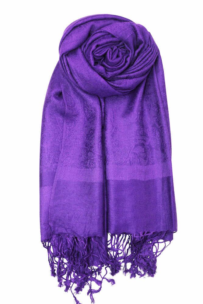 This deep purple jacquard paisley pashmina is the perfect accessory to wear at weddings, church, meetings, dinner, brunch and work. Style it as a shawl around your shoulders, wear it as scarf to keep your neck warm, gorgeous as a hijab. Wear it under your favorite coat or blazer, goes beautifully with dresses. This scarf will transition with you from casual to formal. Whether you like dressing bohemian, eclectic, or elegant, this scarf will go nicely with your style.