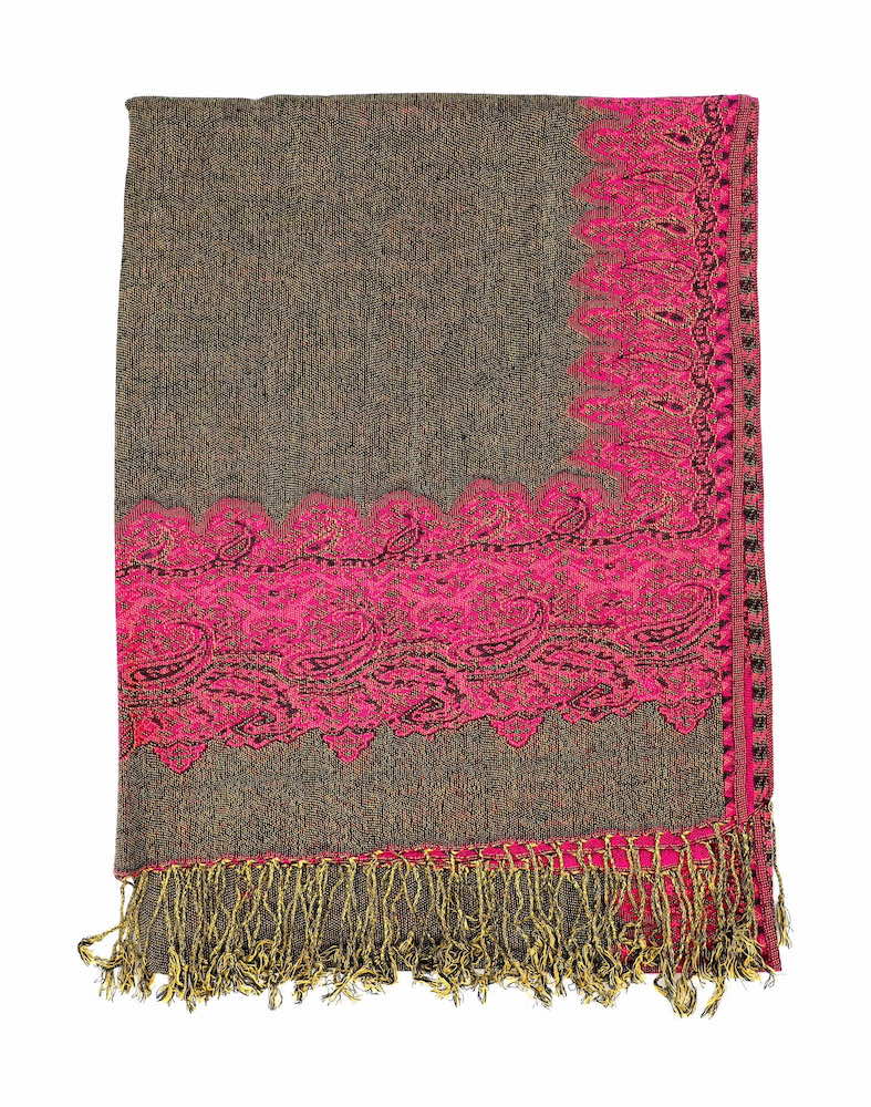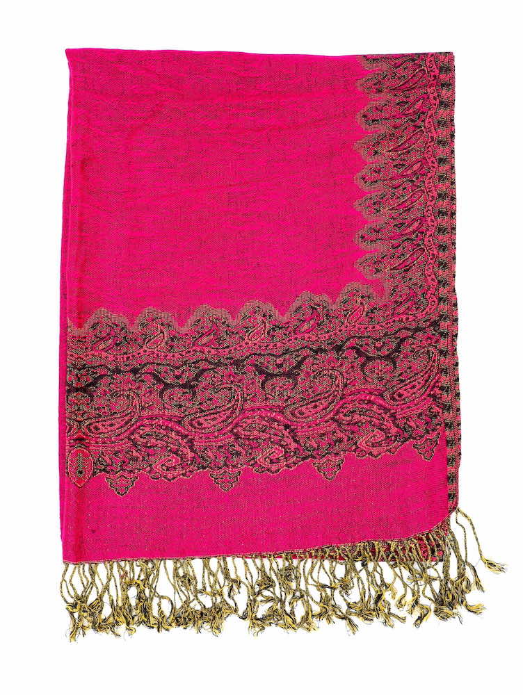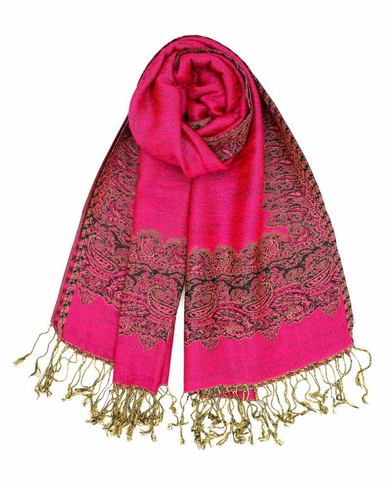 One shawl does it all! These fuchsia border pattern pashminas are shiny dressy and elegant for any wedding, special occasion and as a women’s gift. Recommend this to anyone wanting a bit of color and pretty fabric to drape around the neck, it gives a nice feminine touch.