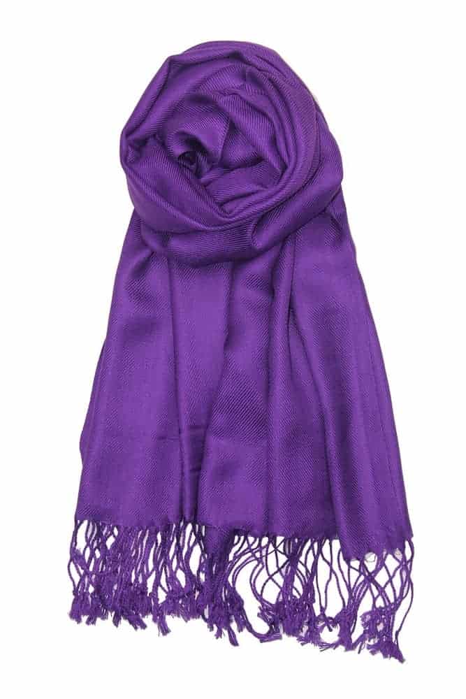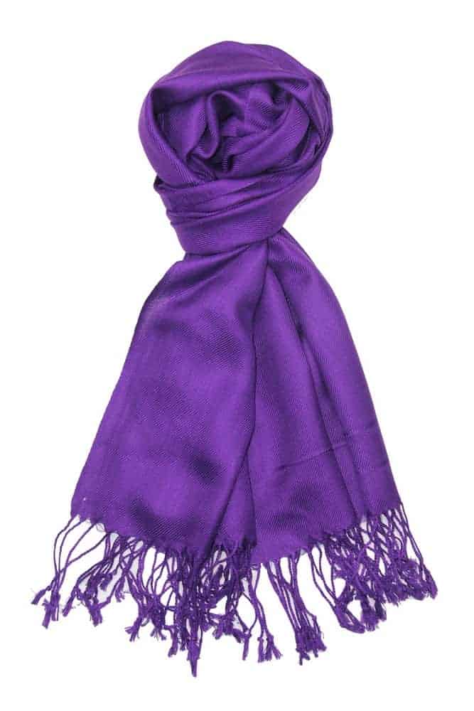 Adds great interest to a guest’s formal outfit for an evening event or dinner date. The purple pashmina shawl is good for an evening out in a strapless dress to keep your shoulders warm or air-conditioned places (office, church, airplane, theater, restaurant, supermarket and cruise travel). Wrap a pashmina scarf around shoulders for a touch of late-evening warmth, or tie around your neck for casual panache. Rolls up and fits in your purse easily.