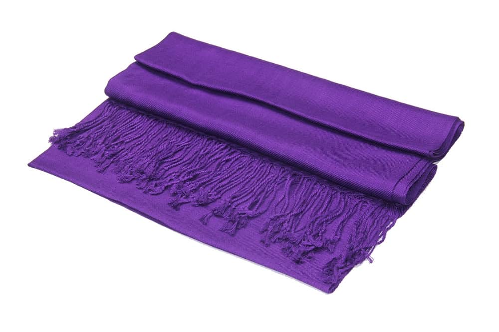 It’s extremely soft, elegant, and has a subtle sheen. Substantial fabric that is smooth and tightly woven, this purple pashmina shawl is a nice accessory in the Spring, Summer, Fall, even Winter. Drapes nicely and feels luxurious around the neck.