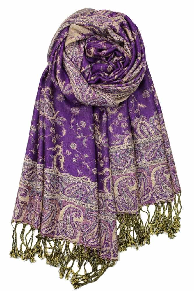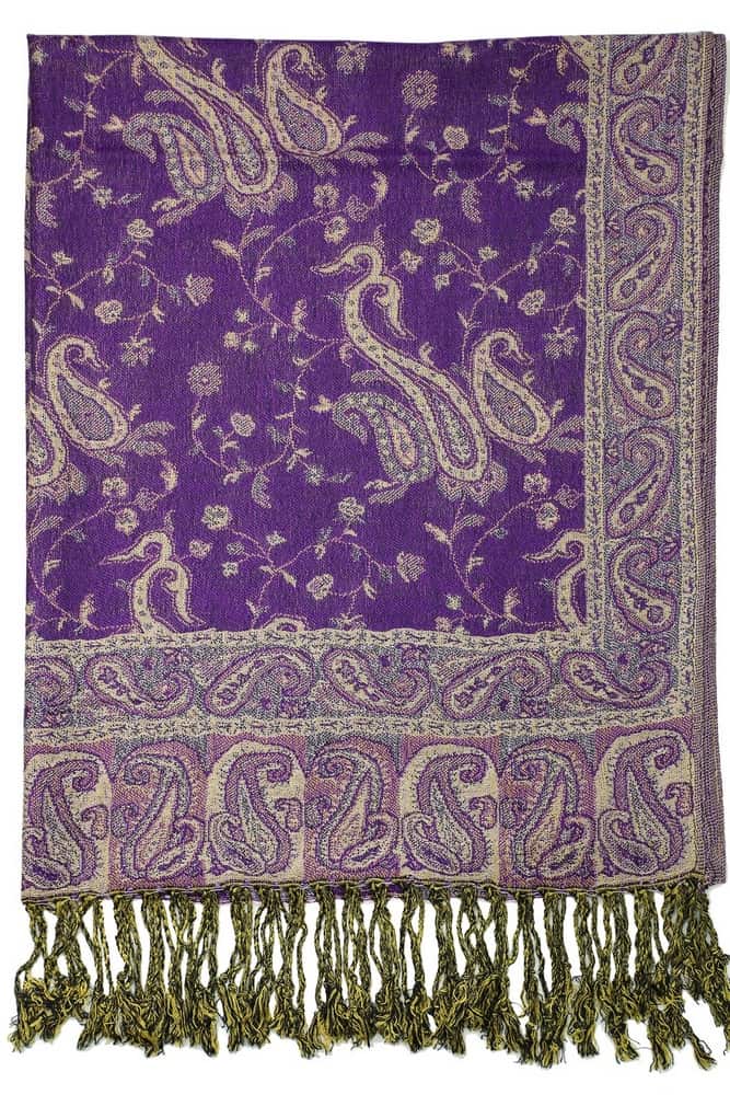 Design is fully reversible. This purple reversible paisley pashmina scarf is beautiful and charming for evening wear and great for this time of year. One shawl does it all! These evening pashmina shawls are shiny dressy and elegant for any wedding, special occasion and as a women’s gift. Recommend this to anyone wanting a bit of color and pretty fabric to drape around the neck, it gives a nice feminine touch.