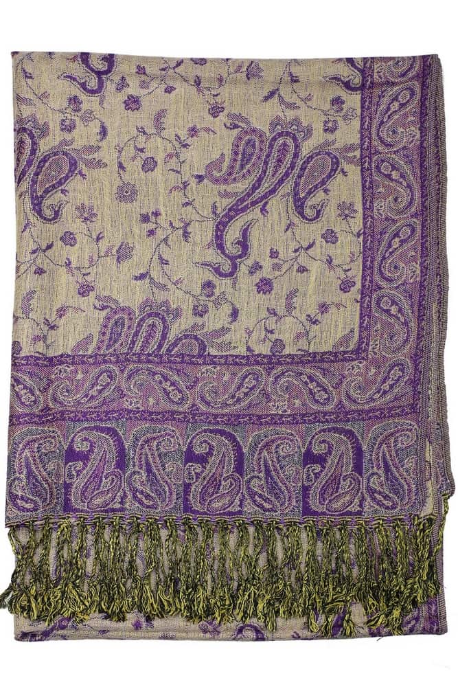 This purple reversible paisley pashmina shawl features simple paisley design with a pattern made from flowers and vines. They are quite exotic looking with their many spicy colors. This timeless pashmina scarf is the best way to spice up an ensemble while staying nice and warm.