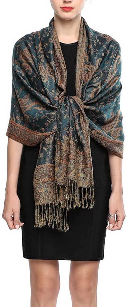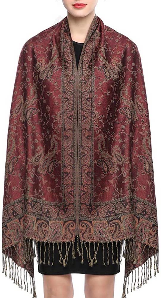 - Design is fully reversible. This reversible rave pashmina scarf features double layered fabric and simple paisley design with a pattern made from flowers and vines.