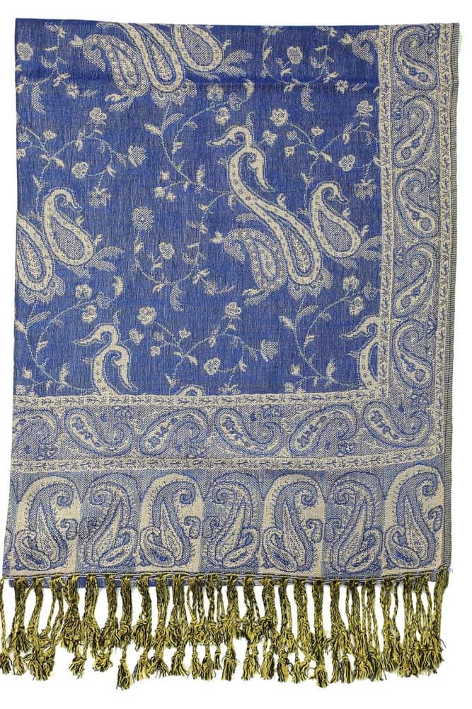 Design is fully reversible. This royal blue reversible paisley pashmina scarf is beautiful and charming for evening wear and great for this time of year. One shawl does it all! These evening pashmina shawls are shiny dressy and elegant for any wedding, special occasion and as a women’s gift. Recommend this to anyone wanting a bit of color and pretty fabric to drape around the neck, it gives a nice feminine touch.