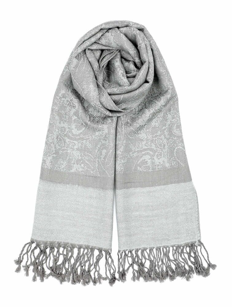This silver grey jacquard paisley pashmina is the perfect accessory to wear at weddings, church, meetings, dinner, brunch and work. Style it as a shawl around your shoulders, wear it as scarf to keep your neck warm, gorgeous as a hijab. Wear it under your favorite coat or blazer, goes beautifully with dresses. This scarf will transition with you from casual to formal. Whether you like dressing bohemian, eclectic, or elegant, this scarf will go nicely with your style.