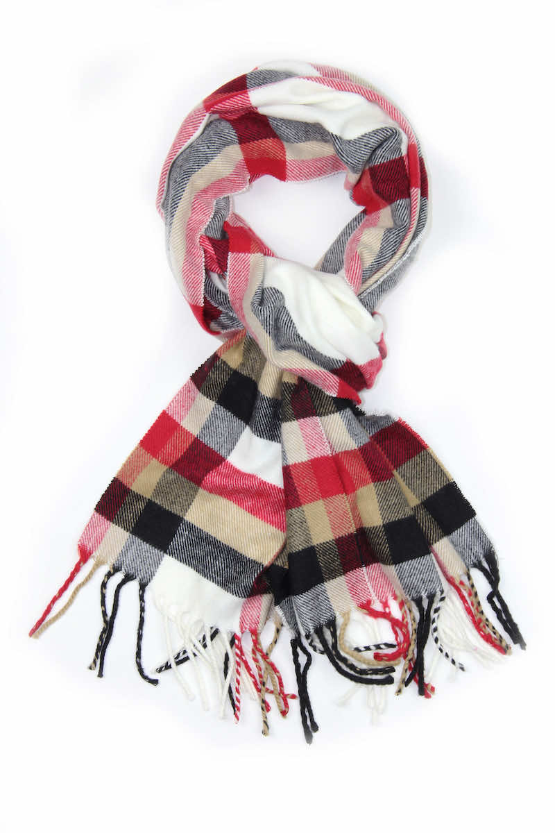 Cashmere feel checked scarf red black white main imageCashmere feel checked scarf red black white image 2